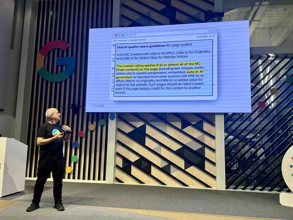 Mueller once again presented the Search Quality Rater Guidelines and emphasized the importance of meeting users’ needs through best practices, highlighting the much-discussed E-E-A-T as a key factor in evaluating page quality. He pointed out that “sites whose main content is automatically generated or AI-generated will rank worse”, something that was recently added to the document.